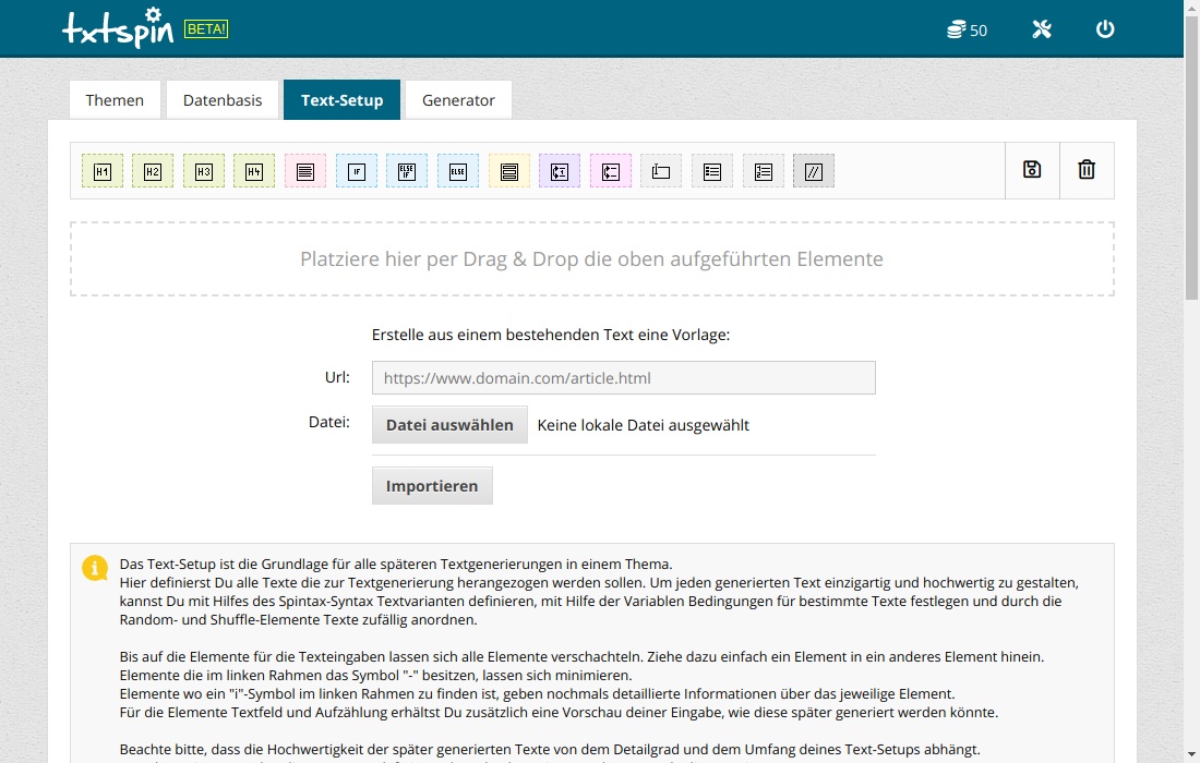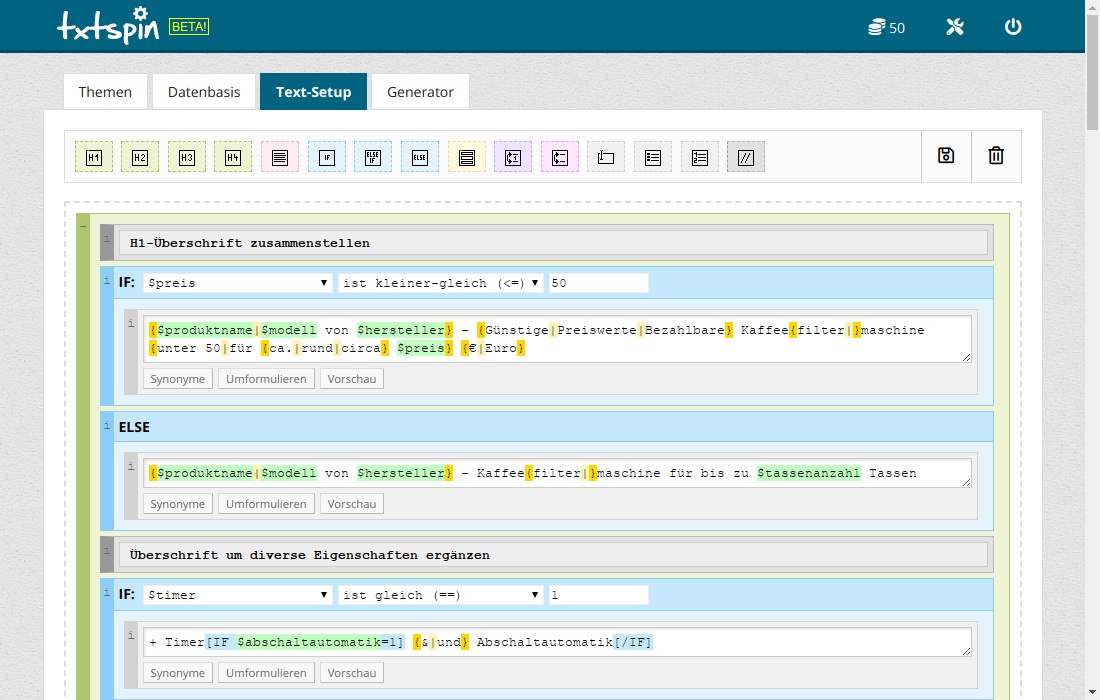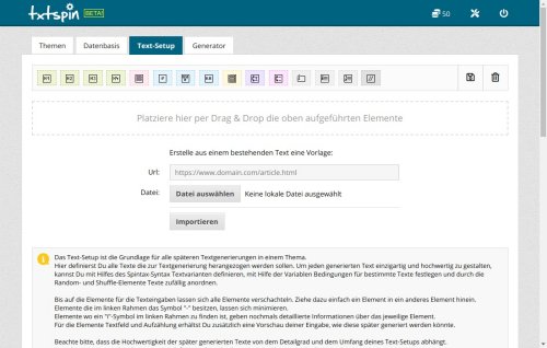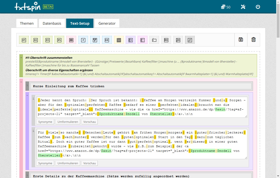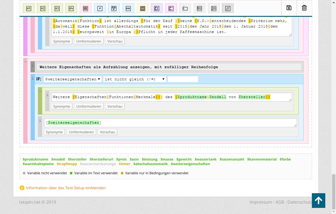Die Grundlage für diese Textgenerierung wird im Text-Setup von txtspin geschaffen.